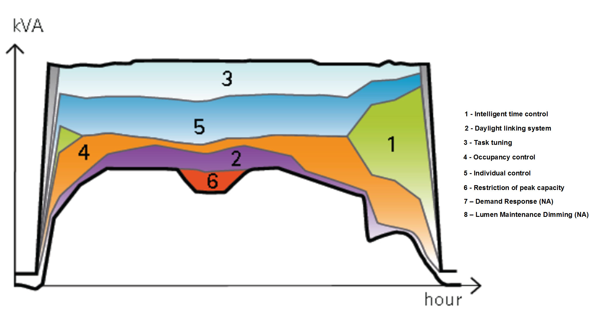 Lighting Controls Strategies Defining different lighting strategies, and anticipate some figures for the correspondant energy savings. Graph of Energy saved portions by using different lighting controls strategies